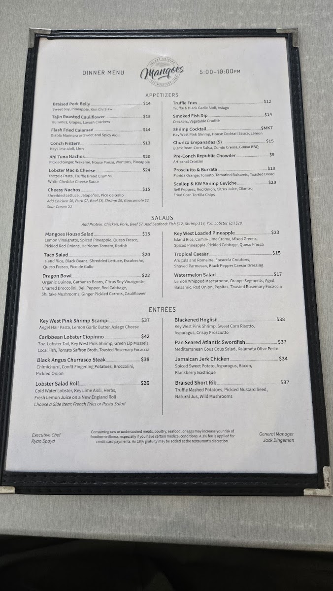 While the service has received mixed reviews, many customers note the outstanding attentiveness of the waitstaff, who are dedicated to ensuring your dining experience is enjoyable. The restaurant's happy hour is another highlight, bringing together great food and drinks in a lively setting that keeps guests returning for more. Whether you're stopping in for a casual drink or a full meal, Mangoes Restaurant promises an experience that resonates with the rhythms of Key West and the warmth of Caribbean flavors.